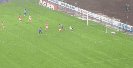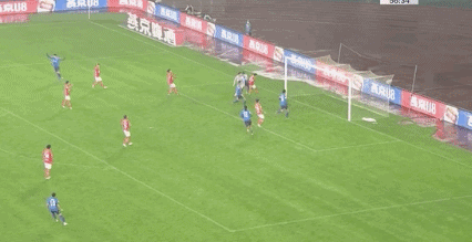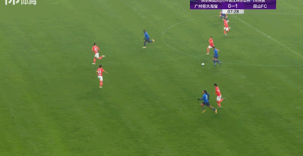 上半场补时阶段,恒大禁区前沿的远射,被彭鹏没收,恒大以0-1落后进入下半场。