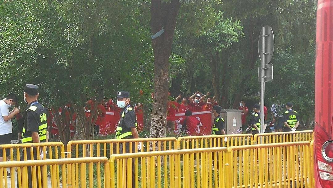 而且,球迷们始终是在“蓝区”之外,没有和球队接触。