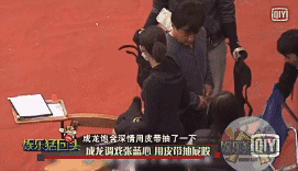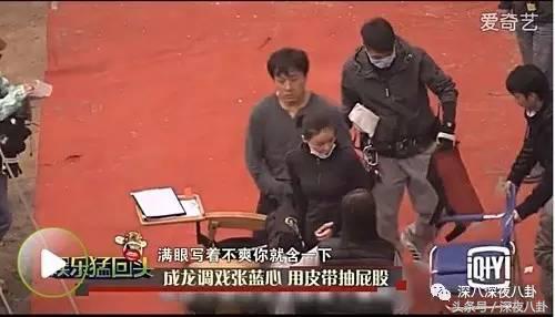 嗦是成龙在片场被拍到,用皮带,抽了下旁边高个儿妹子的屁股。。。