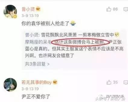 这次尹正爆恋情,王智居然发了个不开心的表情,蓝后又秒删,嘛意思?