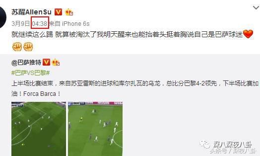巴萨赢球不是早几个小时就有消息了么??疯狂球迷苏醒三点多守到六点都发了,小张姐姐略晚啊