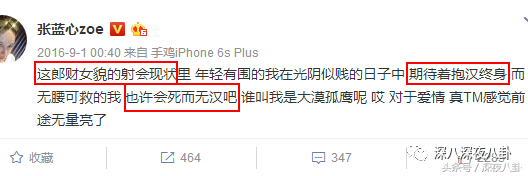 张蓝心微博被骂得哟。。稀碎,她一直没有回应过这些