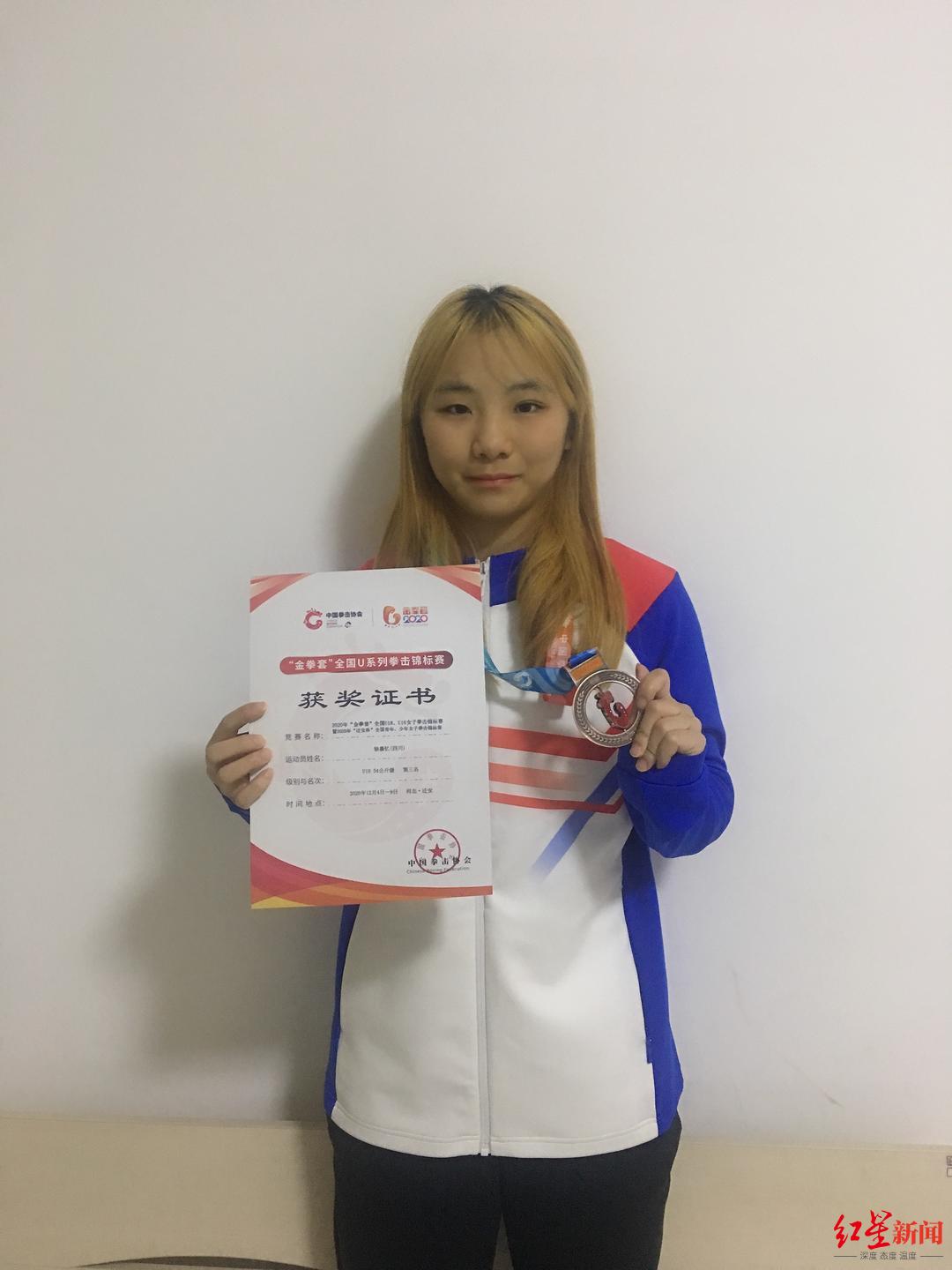 徐嘉忆,现年18岁,四川省自贡市拳击队注册运动员,国家一级运动员,就读于自贡市外国语学校,目前在四川省女子拳击队训练。