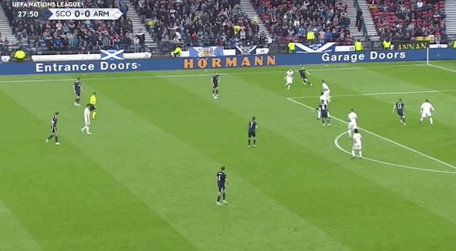第45分钟,麦克纳在禁区混战中补射破门,但因越位在先,进球被判无效。第75分钟,曼联后腰麦克托米奈替补出场,但后来双方再无建树,最终苏格兰主场2-0战胜亚美尼亚。