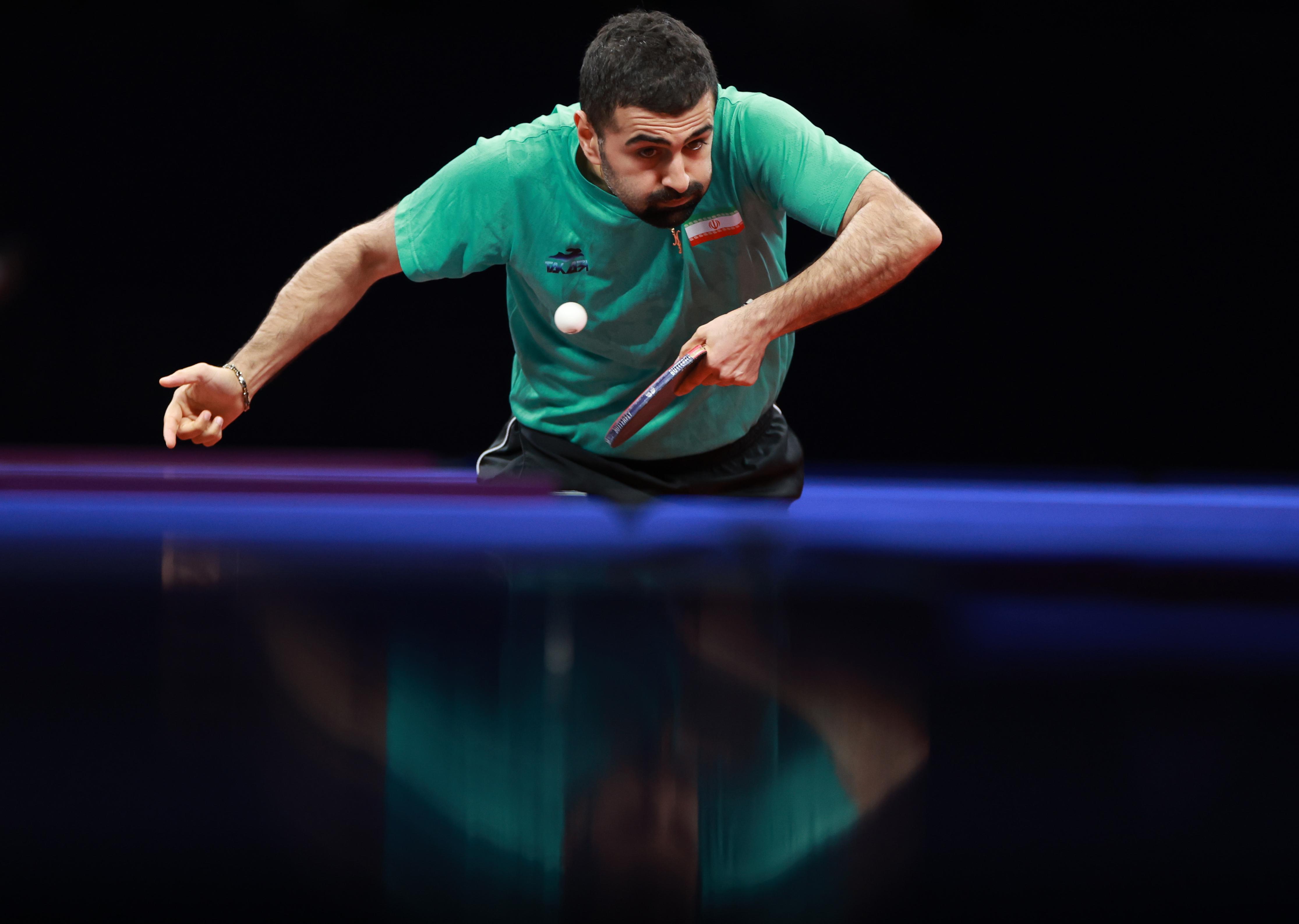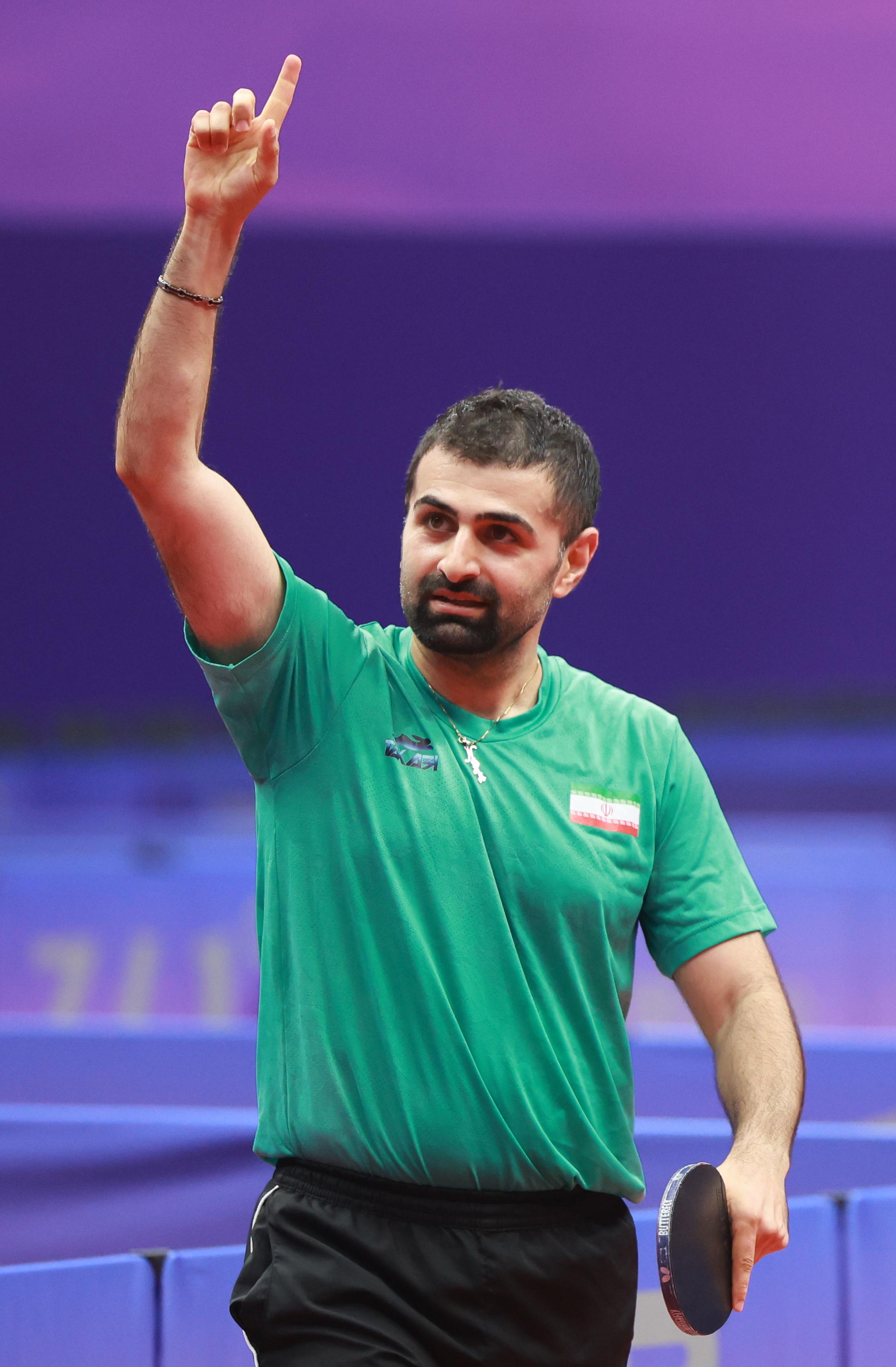 9月25日,诺沙迪·阿拉米扬在杭州亚运会乒乓球男子团体半决赛中。新华社记者 刘续 摄