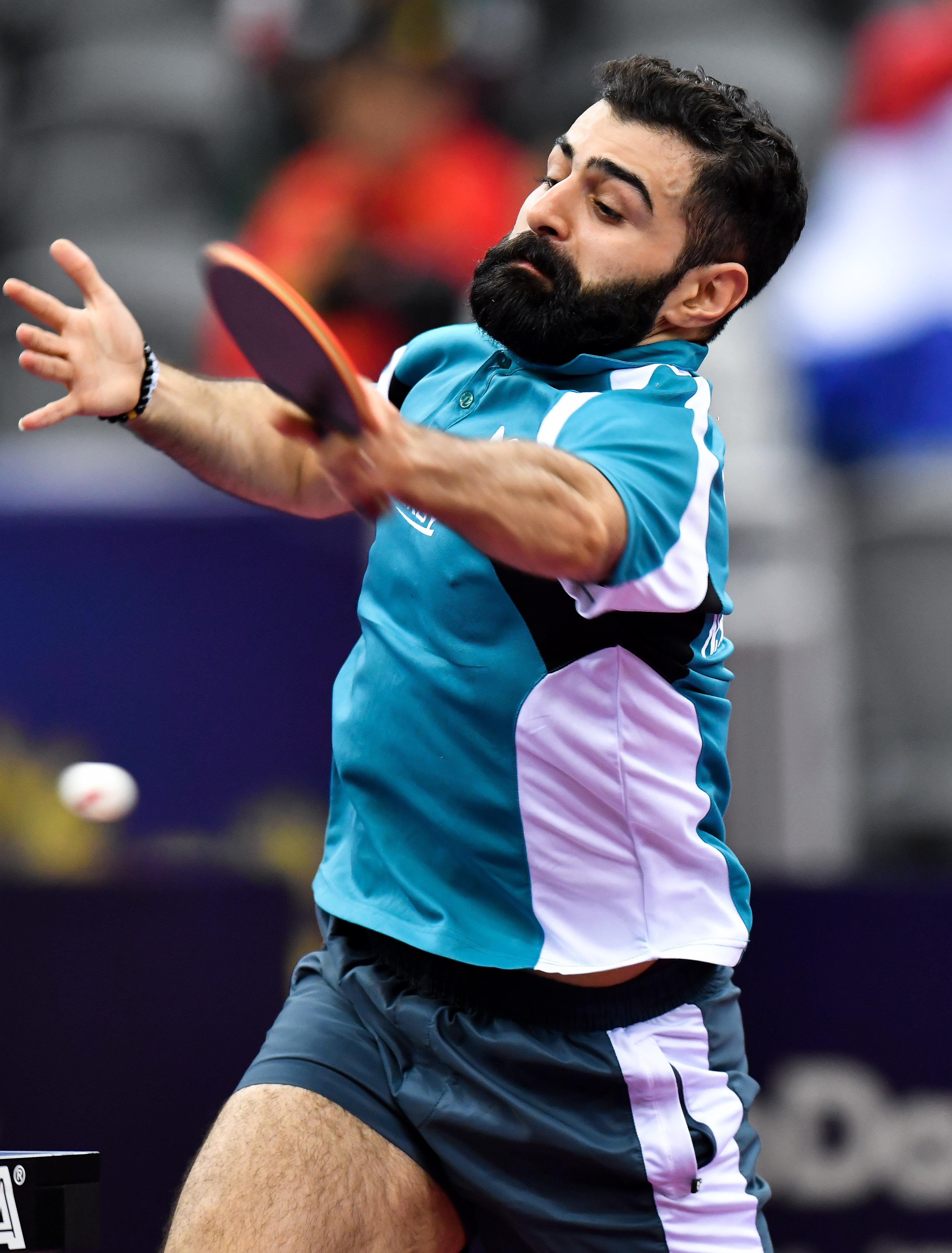 2018年3月8日,诺沙迪·阿拉米扬在国际乒联世界巡回赛白金赛事卡塔尔公开赛中。新华社发(尼库 摄)