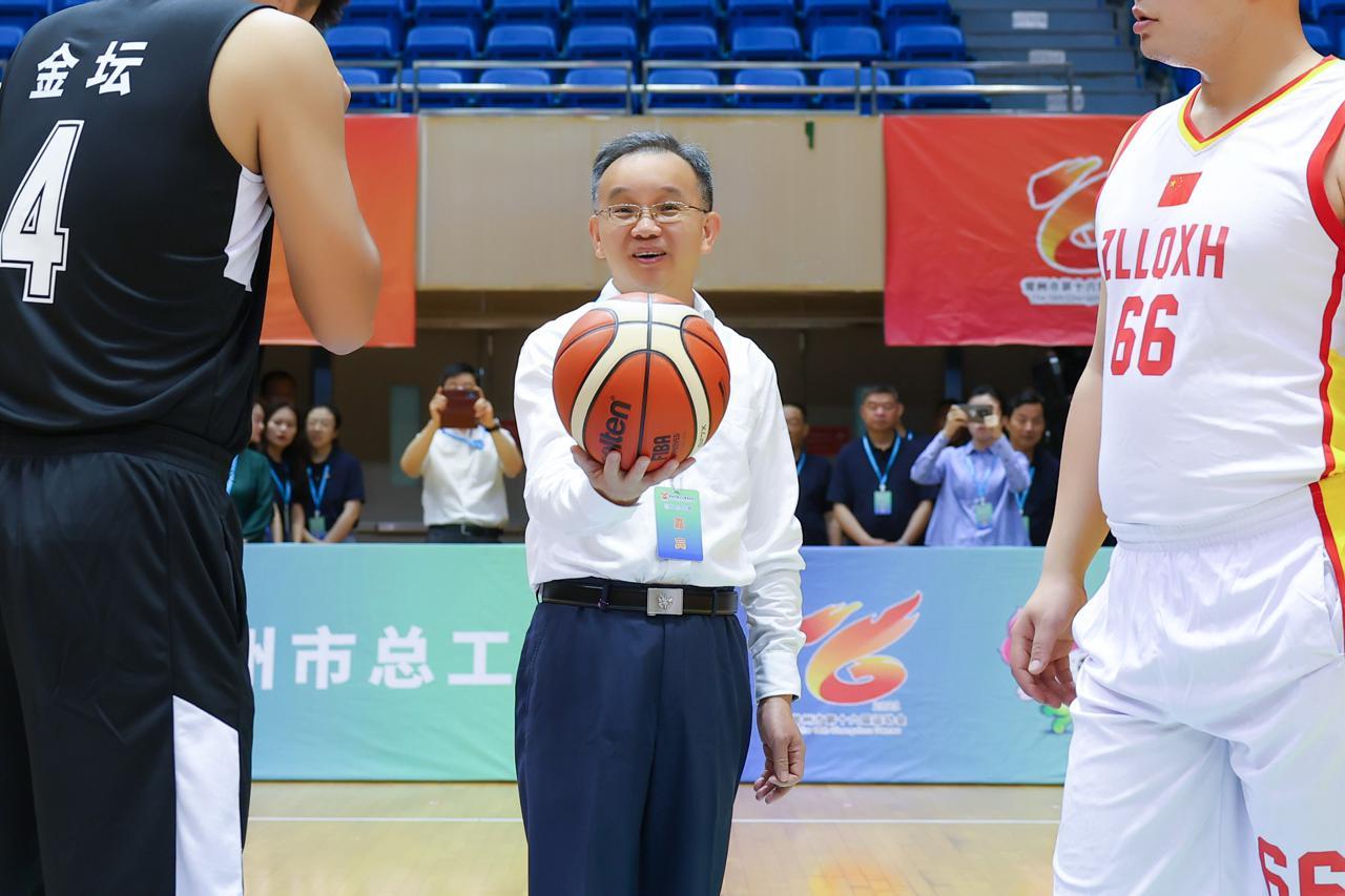 交汇点讯 5月18日上午,常州市第十六届运动会职工部篮球比赛在常州奥体中心体育馆拉开帷幕。市总工会党组书记、副主席刘卫国出席并为首场比赛开球。市总工会副主席宣建强参加活动。