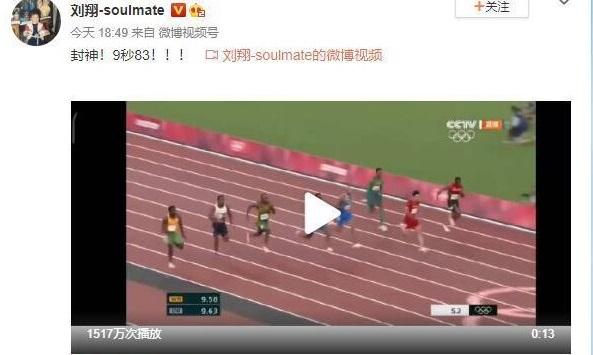 在火星撞地球的百米大战后,苏炳添在赛后采访中,第一时间致敬刘翔:“我跟翔哥一直都有联系,他也不断地鼓励我、支持我。我第一次突破10秒大关的时候,翔哥也在现场。