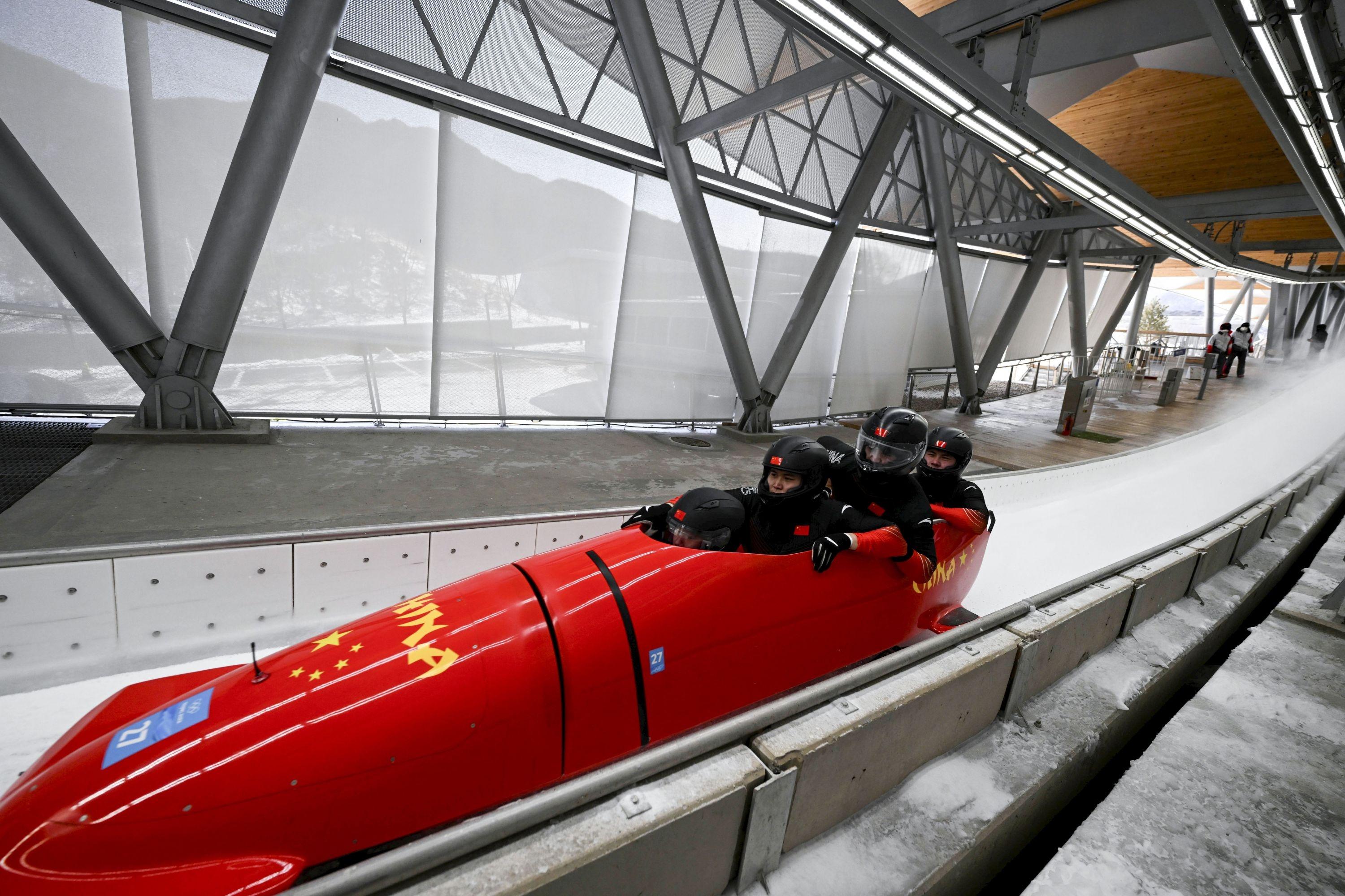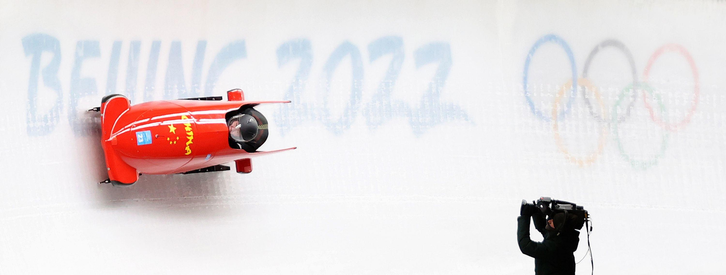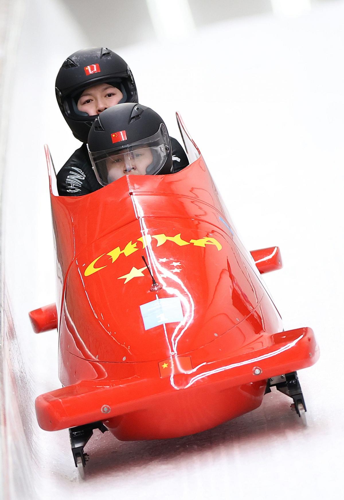 2月19日,北京2022年冬奥会女子双人雪车比赛在国家雪车雪橇中心举行。新华社发