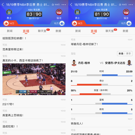 图:新浪新闻app“NBA直播”