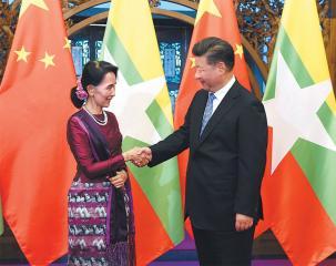 8月19日,国家主席习近平在北京钓鱼台国宾馆会见缅甸国务资政昂山素季。 新华社记者 饶爱民 摄