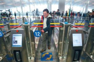 2009年1月20日,北京边检在首都国际机场T3航站楼开通入境自助通关系统,港澳旅客可以实现刷卡通关,不必再持护照办理通关手续。图/视觉中国