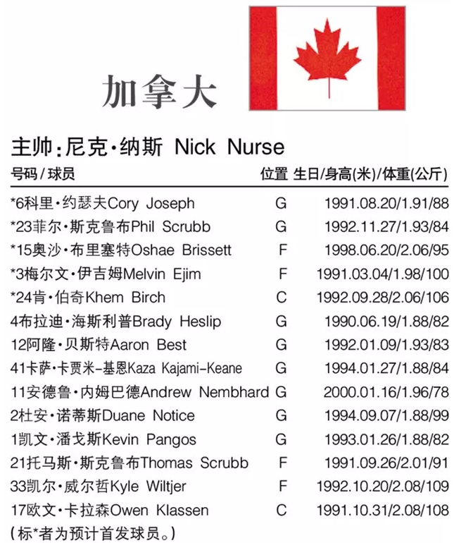 加拿大 ~核心:主帅纳斯,科里·约瑟夫、巴萨后卫潘戈斯、肯伯奇(威尔哲)