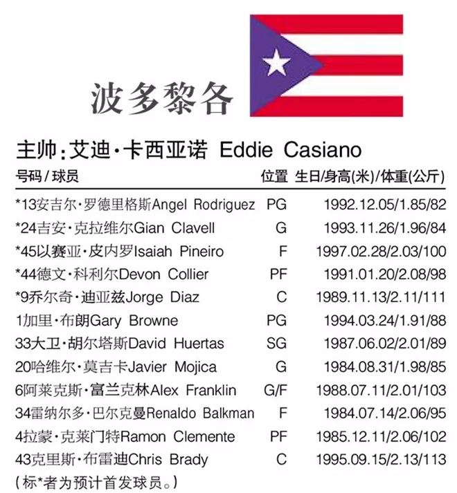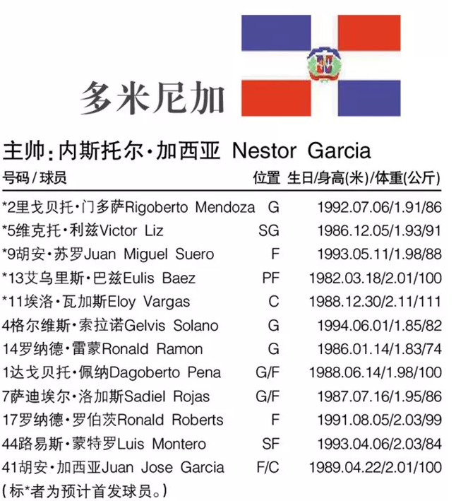 多米尼加 ~核心:得分后卫维克托·利兹、控卫里戈贝托·门多萨