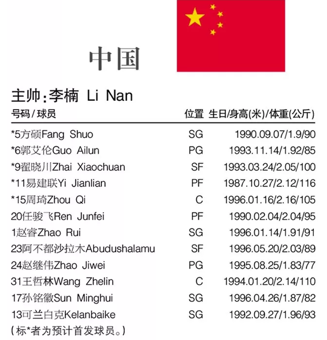 中国~ 核心球员:大前锋易建联,控卫郭艾伦