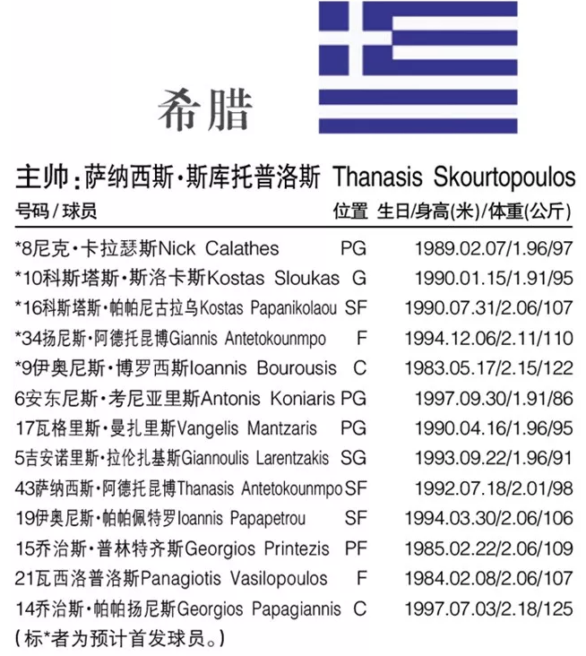 希腊~ 核心:扬尼斯·安特托昆博 、卡拉西斯、帕帕扬尼斯、帕帕尼古拉乌