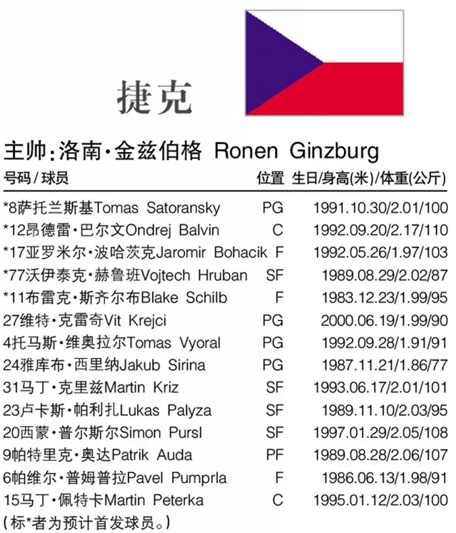 捷克~ 核心:后卫萨托兰斯基、中锋巴尔文