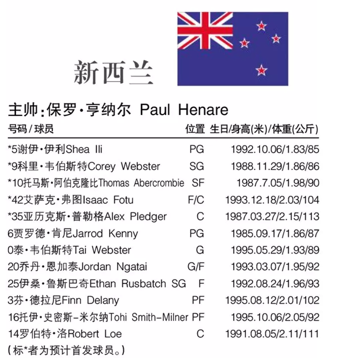 新西兰~ 核心:后卫科里·韦伯斯特、内线艾萨克·福图、后卫泰·韦伯斯特