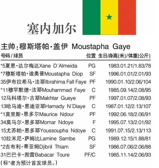 塞内加尔 ~核心:内线恩多耶,内线巴巴卡·图雷
