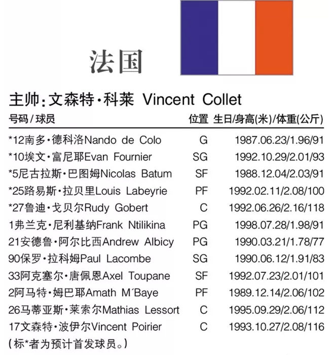 法国 ~核心:戈贝尔 、德科洛、巴图姆、富尼耶、尼利基纳