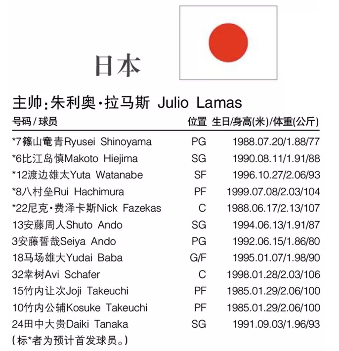 日本~ 核心:八村垒、渡边雄太、费泽卡斯(马场雄大、比江岛慎)