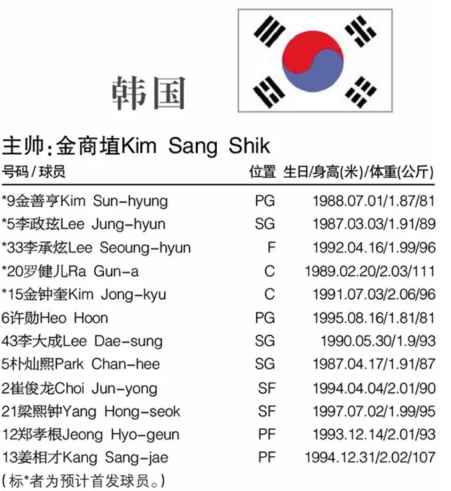 韩国 ~核心球员: 罗健儿(拉特利夫)、中锋金钟奎