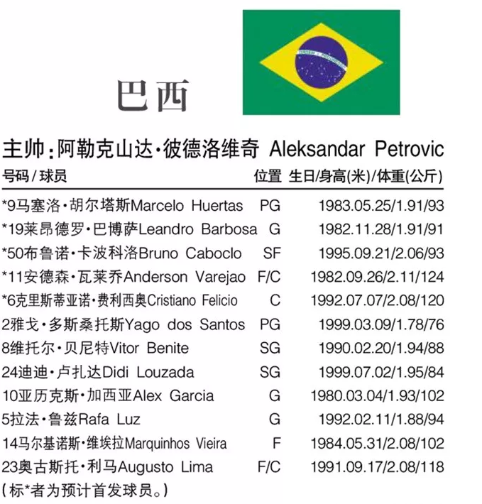 巴西~ 核心:37岁巴博萨、37岁瓦莱乔、36岁胡尔塔斯、 卡博克洛、费利西奥