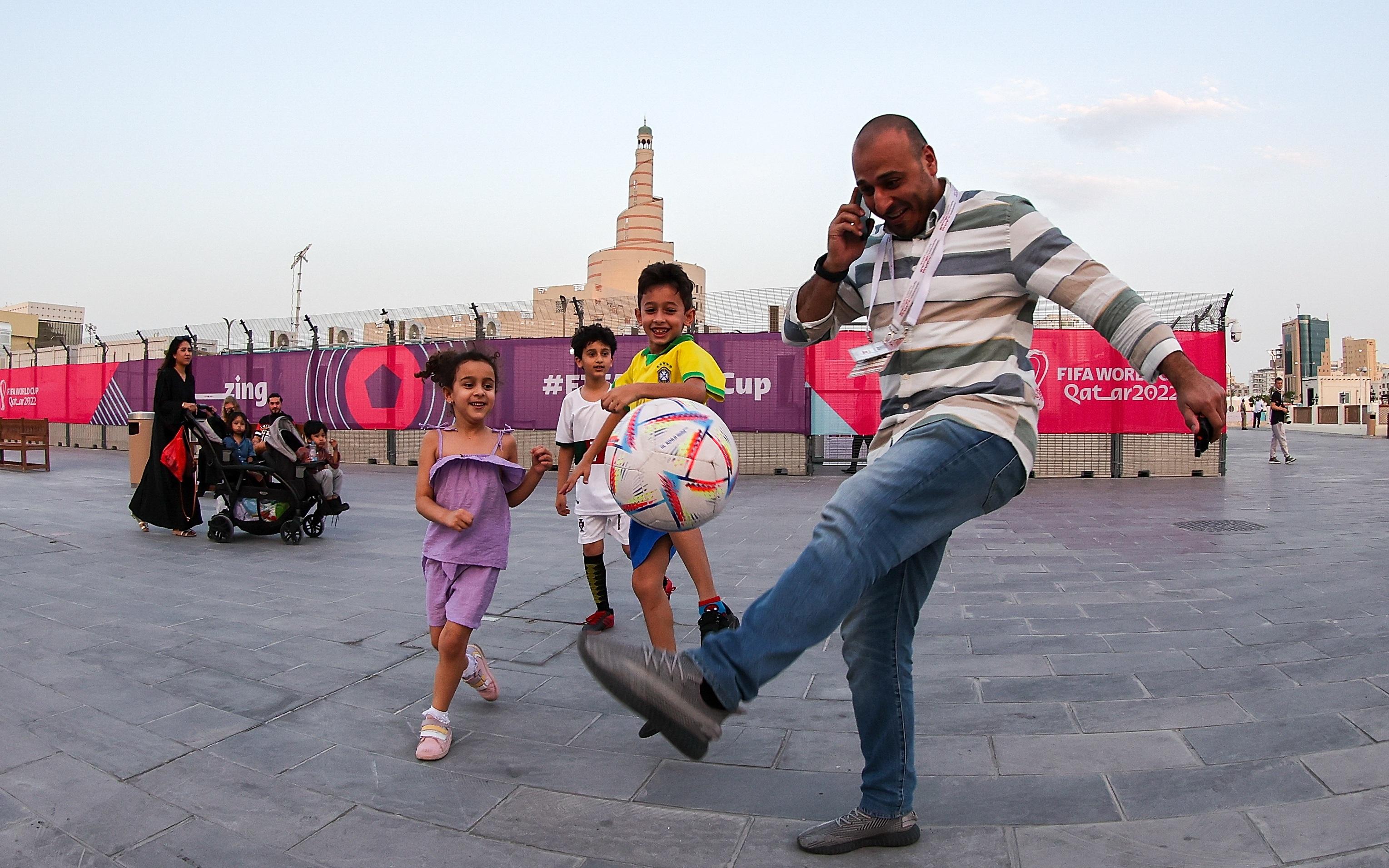 11月12日,卡塔尔世界杯临近,多哈街头足球氛围渐浓。 图/IC photo
