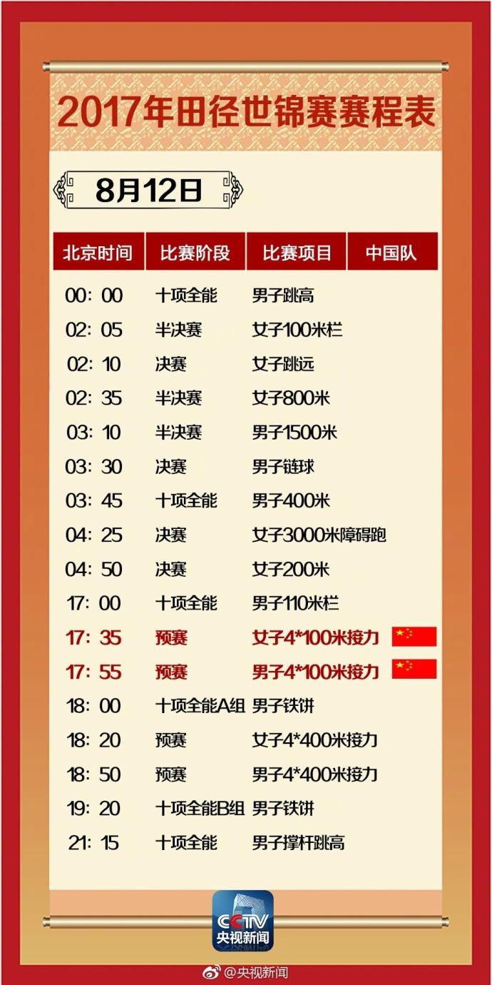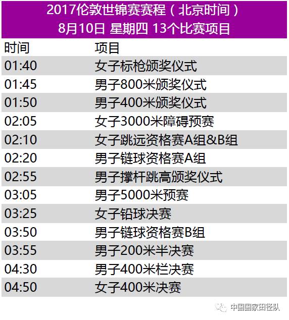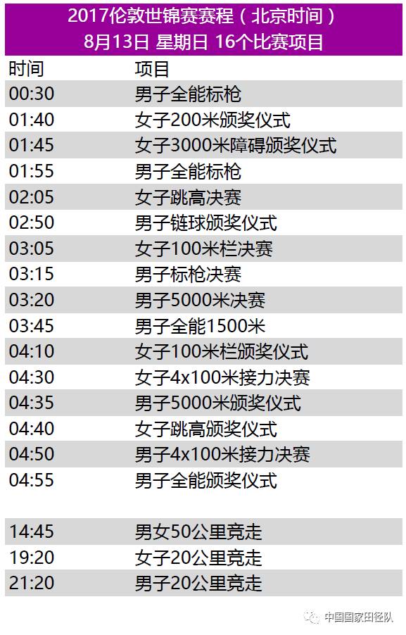 倒计时10天! 2017世界田径锦标赛将于伦敦时间8月4日~8月13日举行。小编为大家整理了北京时间 的全部竞赛日程,以便届时收看比赛。