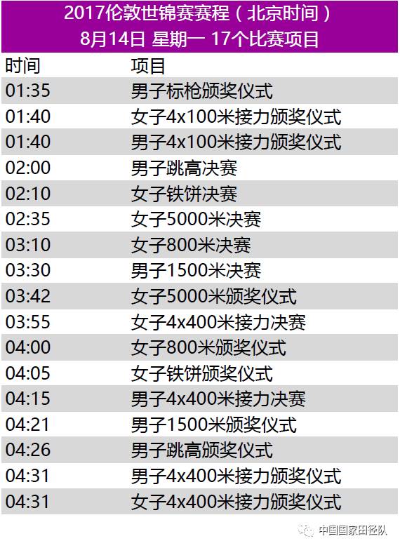 2017年世界田径锦标赛于8月4日在英国伦敦开赛,送你田径最全赛程表↓↓转需!