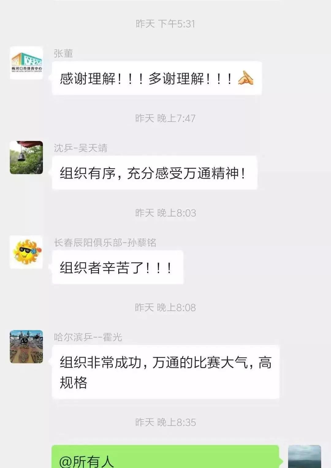 参赛运动员及领队人员对赞助单位通化万通集团及赛事组织方给予了充分的肯定和认可。