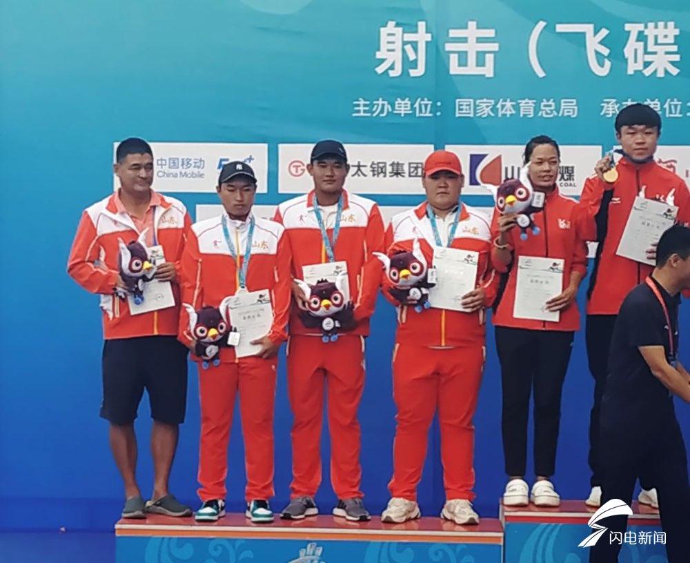 韩旭、赵明垚、郝政亚获得男子甲组飞碟双向团体冠军