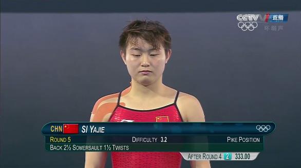 2016里约奥运会跳水女子10米台决赛,中国姑娘任茜、司雅杰出战。任茜第一跳选择向前翻腾3周半曲体107B,表现不错,得到78分。司雅杰第一跳也选择了和任茜一样的动作,完成的更好些,得到81分暂排第二。