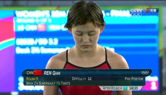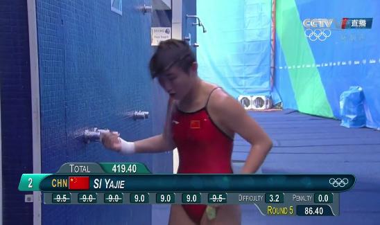 第三跳任茜发挥非常完美,得到94.05分。司雅杰第三跳253.80分,排名第二。前三跳结束,中国两名选手基本可以锁定跳水女子10米台前两名。