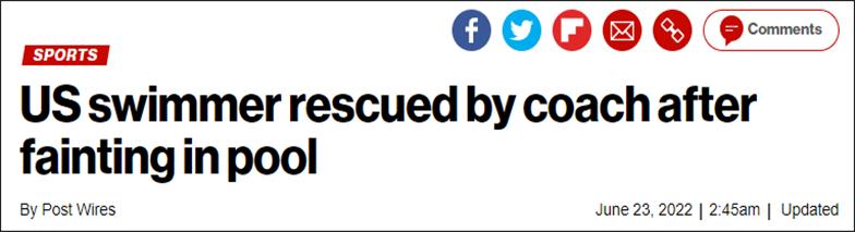 据美媒《纽约邮报》23日报道,25岁的美国花样游泳运动员安妮塔·阿尔瓦雷斯在比赛途中突然失去意识,在完成动作后昏厥过去,沉到泳池底部。