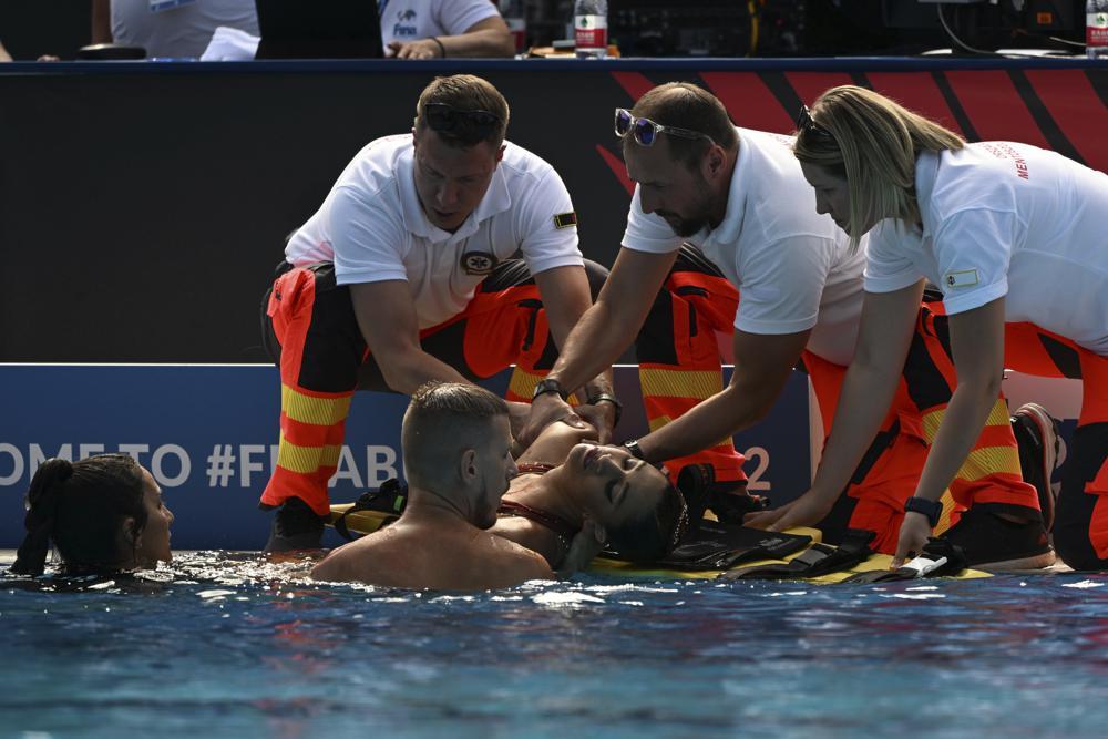 最终,阿尔瓦雷斯被抬上担架,并先在游泳池旁接受了急救,然后被带到医疗中心。