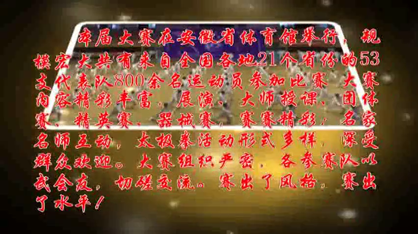 主办单位:合肥市武术运动协会。协办单位:合肥市社会体育指导员协会。摄像:胡宏武、胡彬彬。编辑制作:胡宏武。