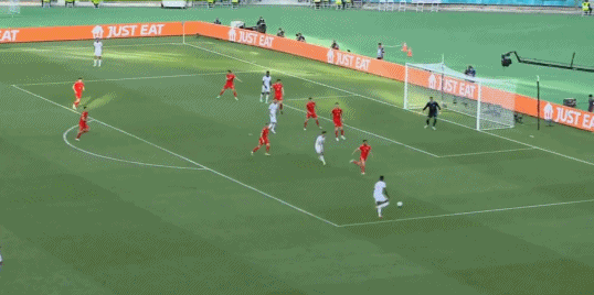 上半场第15分钟,威尔士边路传中,摩尔中路头球攻门遭门将神扑。