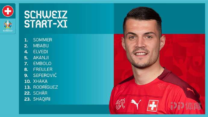 瑞士首发:1-索默;5-阿坎吉、22-舍尔、4-埃尔韦迪;13-里卡多-罗德里格斯、8-弗罗伊勒、10-扎卡、2-姆巴布;23-沙奇里;9-塞费罗维奇、7-恩博洛;