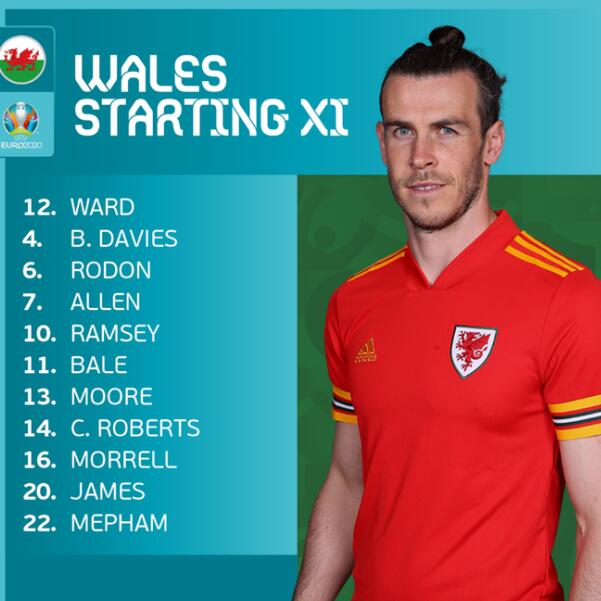 本场比赛,威尔士的首发阵容是:丹尼·沃德、本·戴维斯、罗登、康诺·罗伯茨、梅帕姆、乔·艾伦、拉姆塞、莫雷尔、丹尼尔·詹姆斯、贝尔、基弗·穆尔。