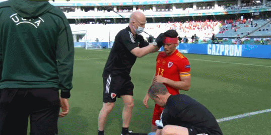 第17分钟,威尔士中锋摩尔在一次头球争顶后受伤,在场边简单治疗后回到比赛。