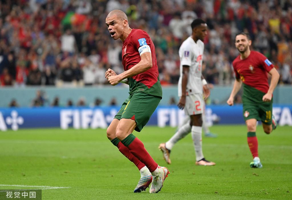 第33分钟,葡萄牙扩大比分!若昂-菲利克斯挑传入禁区,法比安-舍尔头球解围时险些自摆乌龙;随后布鲁诺-费尔南德斯主罚角球传中,佩佩禁区中路抢点头槌叩关!葡萄牙2-0瑞士!