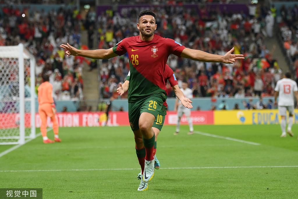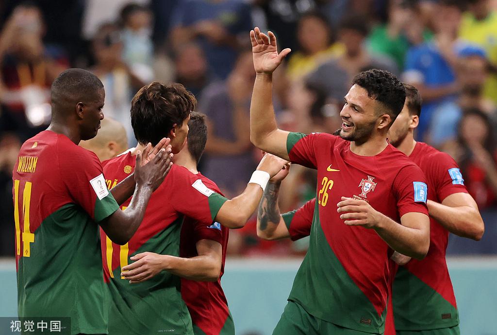 北京时间12月7日03:00,2022卡塔尔世界杯1/8决赛——葡萄牙6-1血洗瑞士晋级八强、将在1/4决赛迎战摩洛哥:上半时,若昂-菲利克斯助攻贡萨洛-拉莫斯小角度爆射打破僵局,沙奇里主罚任意球射门擦柱而出,布鲁诺-费尔南德斯角球助攻佩佩头球再下一城,贡萨洛-拉莫斯半场结束前错失单刀良机。下半时,达洛特助攻贡萨洛-拉莫斯门前捅射锁定胜局,格雷罗爆射锦上添花,阿坎吉打空门扳回一城;若昂-菲利克斯完成助攻双响,贡萨洛-拉莫斯单刀挑射上演帽子戏法,恩博洛倒钩射门被扑出,C罗进球被判越位无效,拉斐尔-莱奥替补建功>>