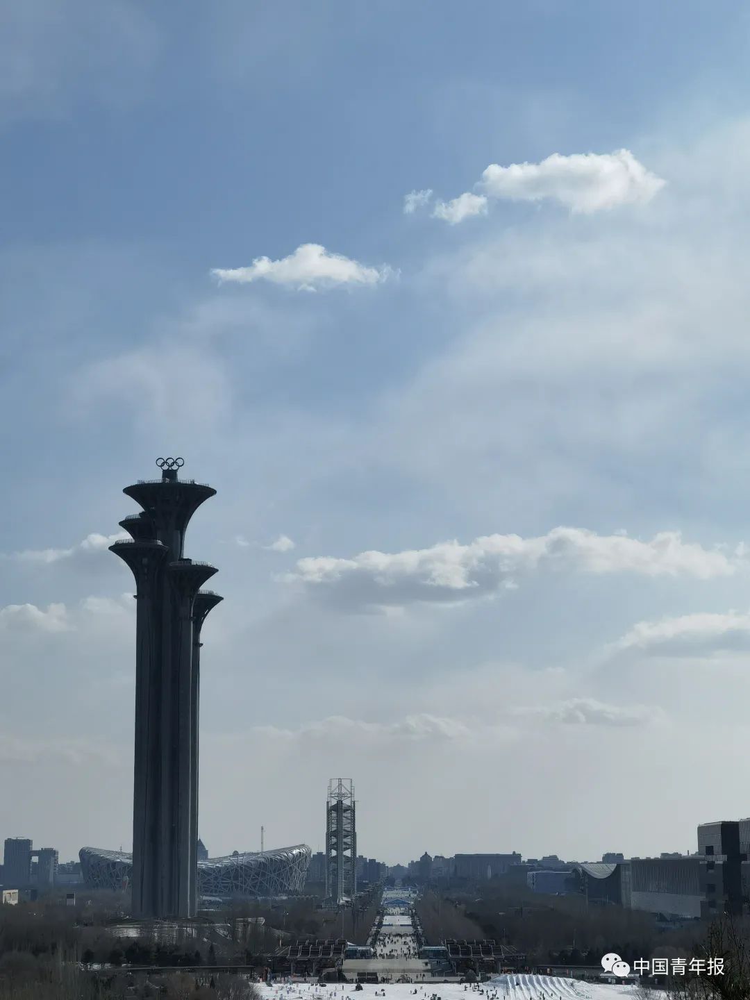 2022年2月19日,站在奥林匹克森林公园内高处,远眺鸟巢。中青报·中青网记者 张力友/摄