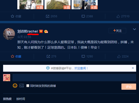 1、先看刘语熙,她估计还在睡着觉,但我已从她微博找到蛛丝马迹。