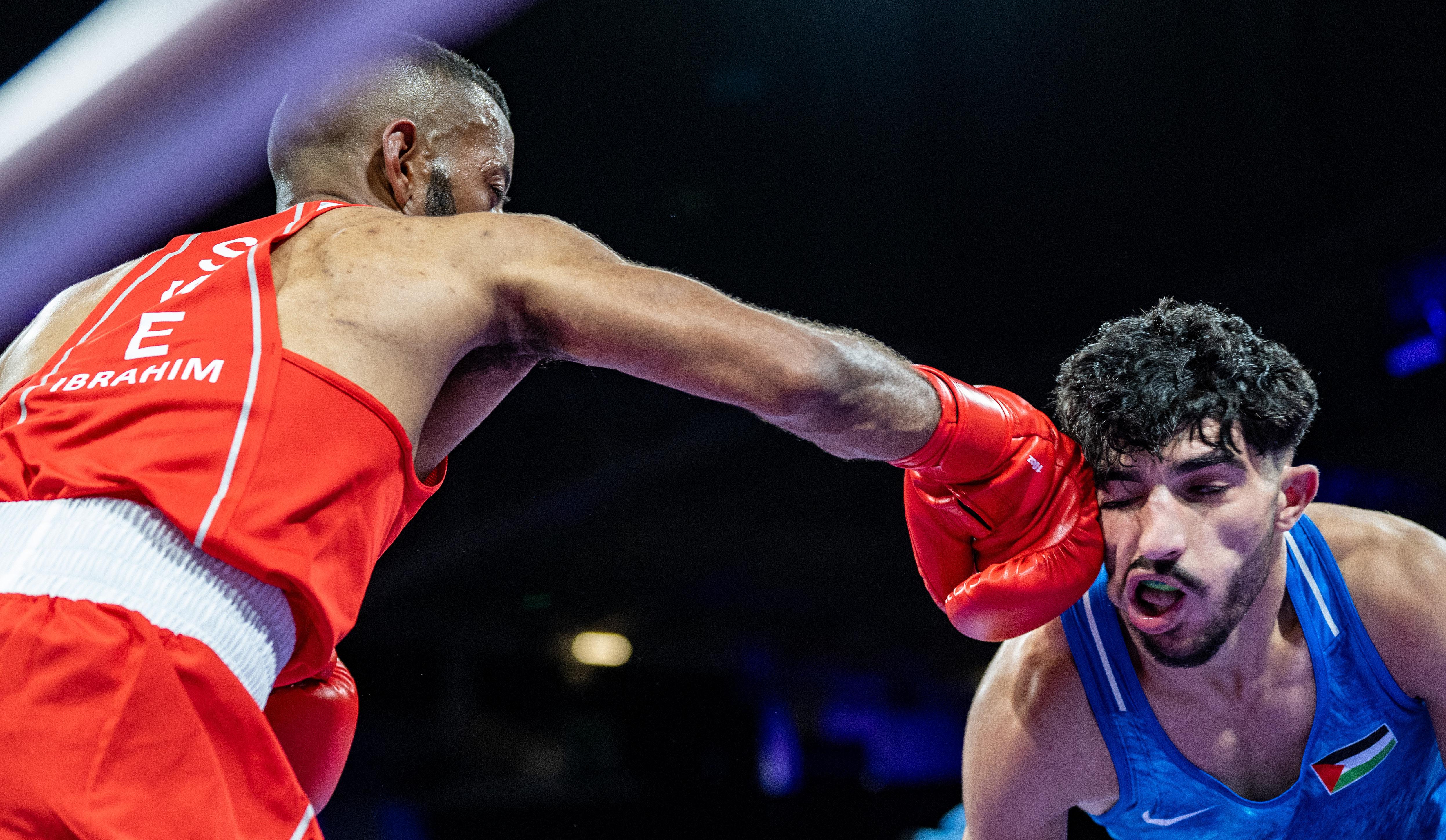 当日,巴黎奥运会拳击项目男子57公斤级32强赛在北巴黎竞技场举行。