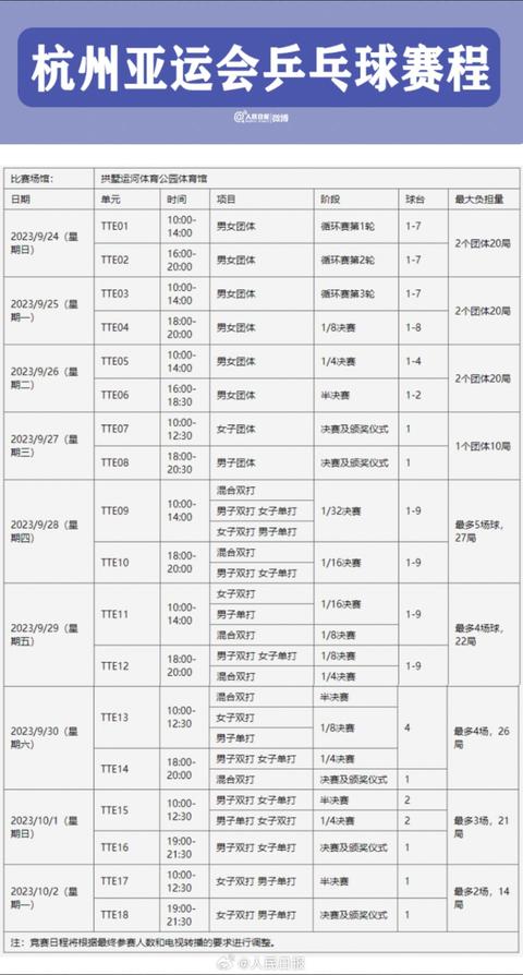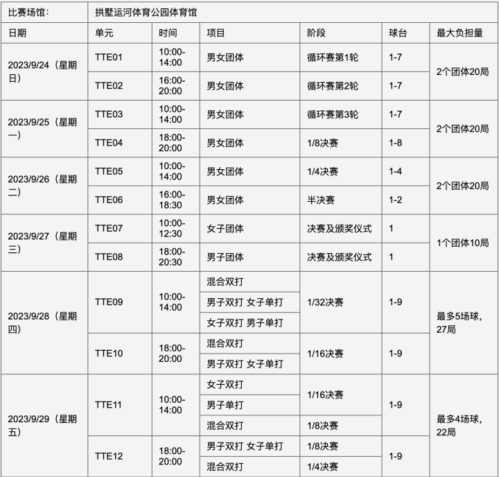 今天,杭州亚运会官网上新乒乓球项目完整赛程。