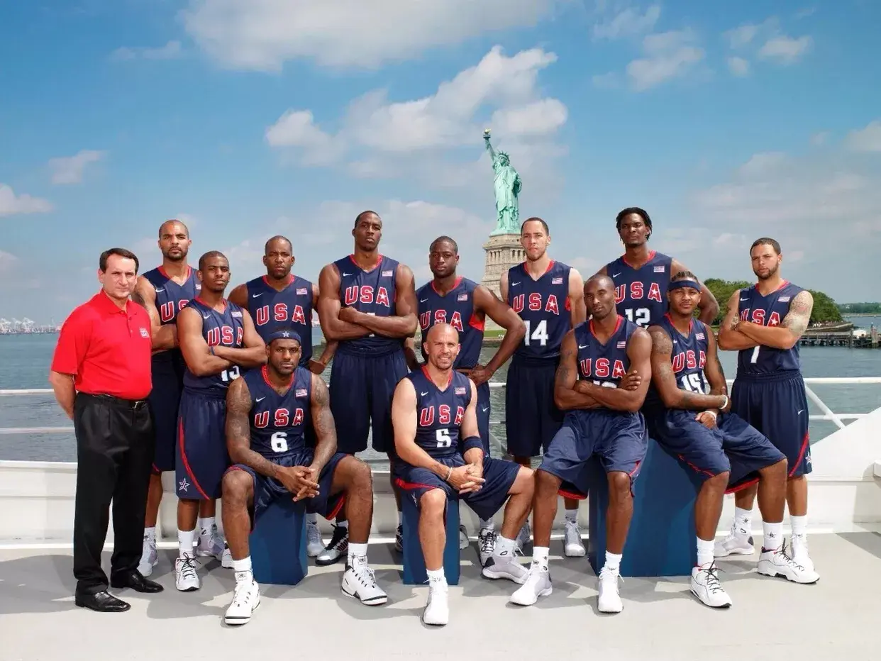 众所周知,美国被誉为篮球王国,国际战绩更是辉煌夺目。自从1936年篮球加入奥运项目以来,美国男篮共包揽了12枚金牌,统治力令人叹为观止。不过进入21世纪,世界篮球突飞猛进,美国不再一枝独秀,连续三届大赛折戟令昔日所向无敌的梦之队威严扫地。因此2008年北京奥运会,美国男篮尽遣精英,誓要在科比·布莱恩特、贾森·基德和03白金一代的率领下完成救赎重返巅峰。