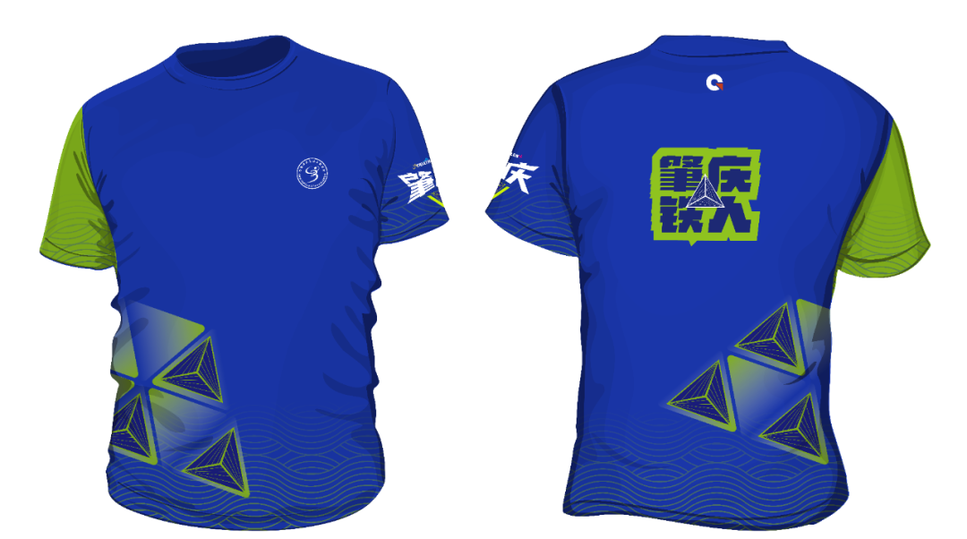 肇 庆铁人三项纪念服,将赛事的激情与肇庆的魅力完美融合。主色调蓝绿相间,取自赛事 VI 色,彰显活力与生机。 背后和袖子上的肇庆铁人硬朗 LOGO,凸显赛事的坚毅与力量。纪念服前后排列的三角立体形赛事图形,时尚感十足,展现出铁人们勇往直前的决心。底纹的水纹设计,寓意着铁人三项中的游泳项目,同时也代表着砚阳湖的碧波荡漾,仿佛让人置身于美丽的肇庆山水之间。 这款纪念服不仅是荣誉的象征,更是对铁人们拼搏精神的致敬,穿上它,让你时刻铭记在肇庆的热血挑战。参赛包