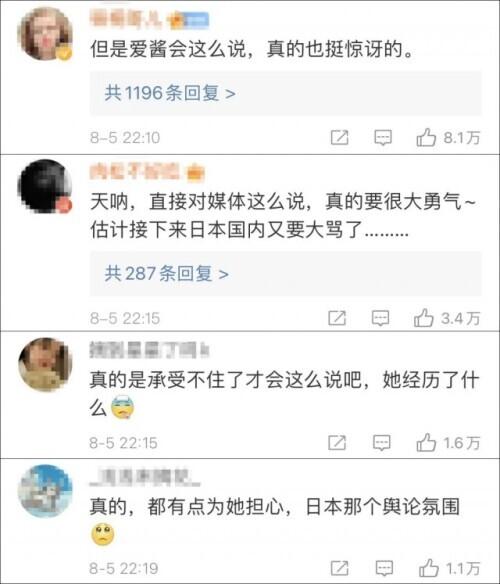 还有网友则纠正起了爱酱说自己受中国人喜爱是因为“长相白胖”的说法,表示大家喜爱并接受她,更因为她是一位一直对中国充满好感和尊敬的日本友人,“爱酱是外国人,但不是外人”。